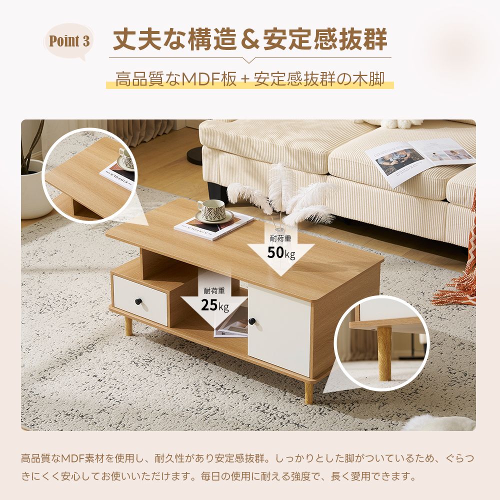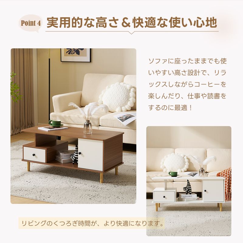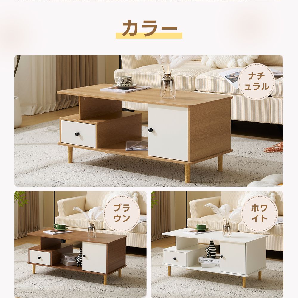 センターテーブル ローテーブル 収納付き 引き出し付き ラック付き 大容量 多機能 リビングテーブル カフェテーブル 北欧 おしゃれ ナチュラル