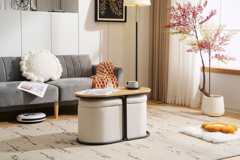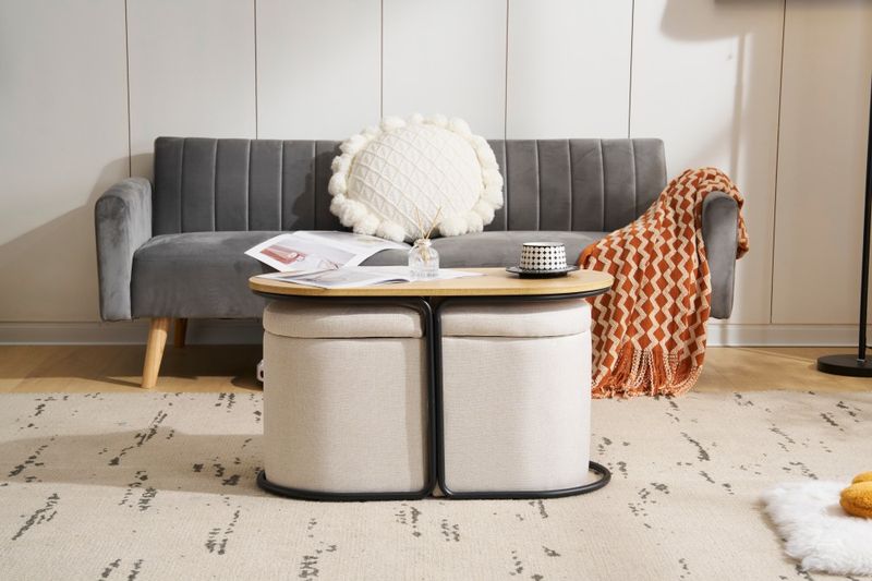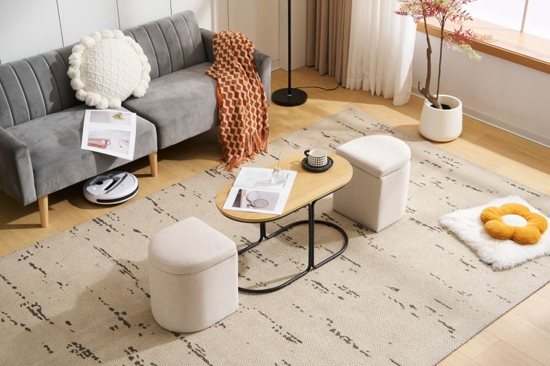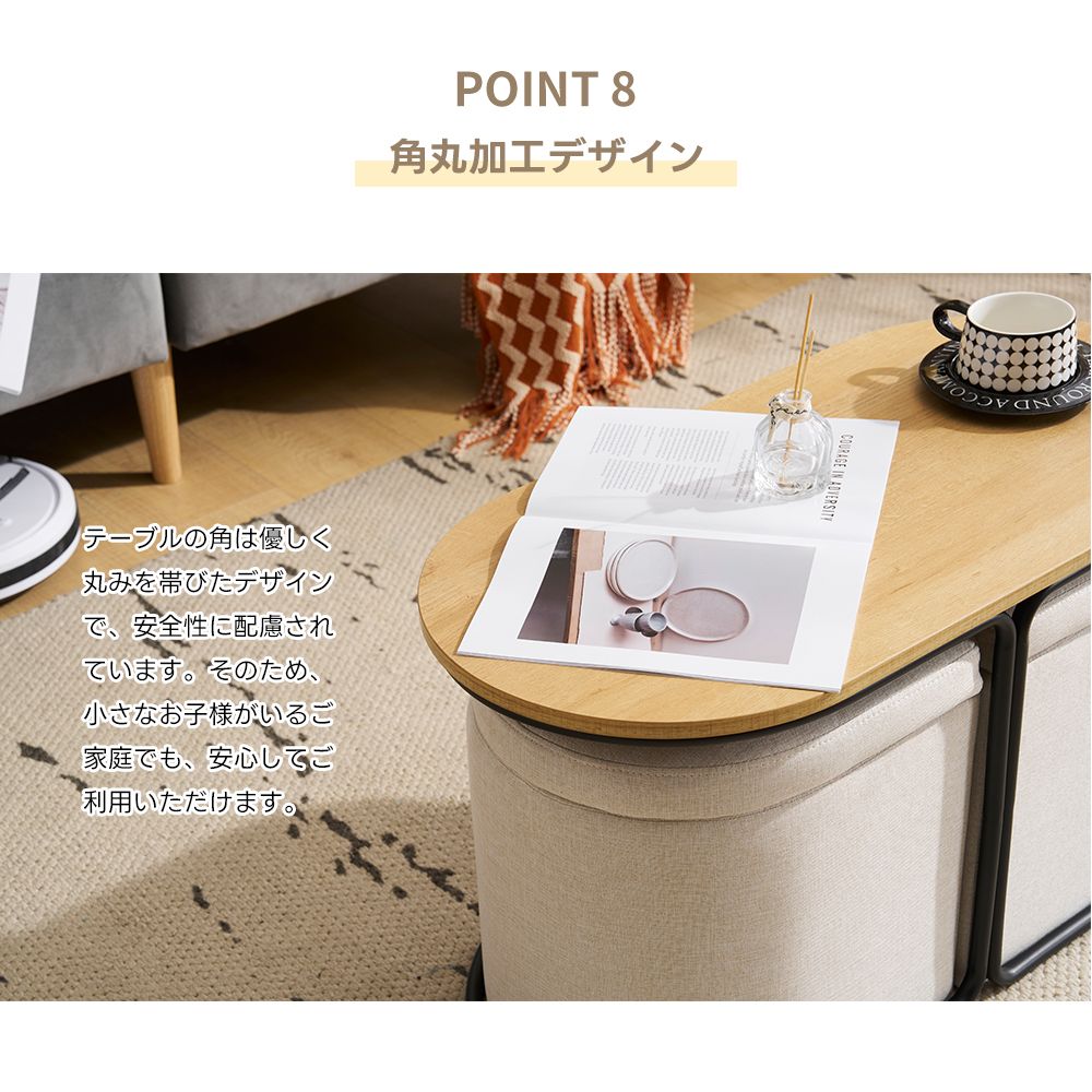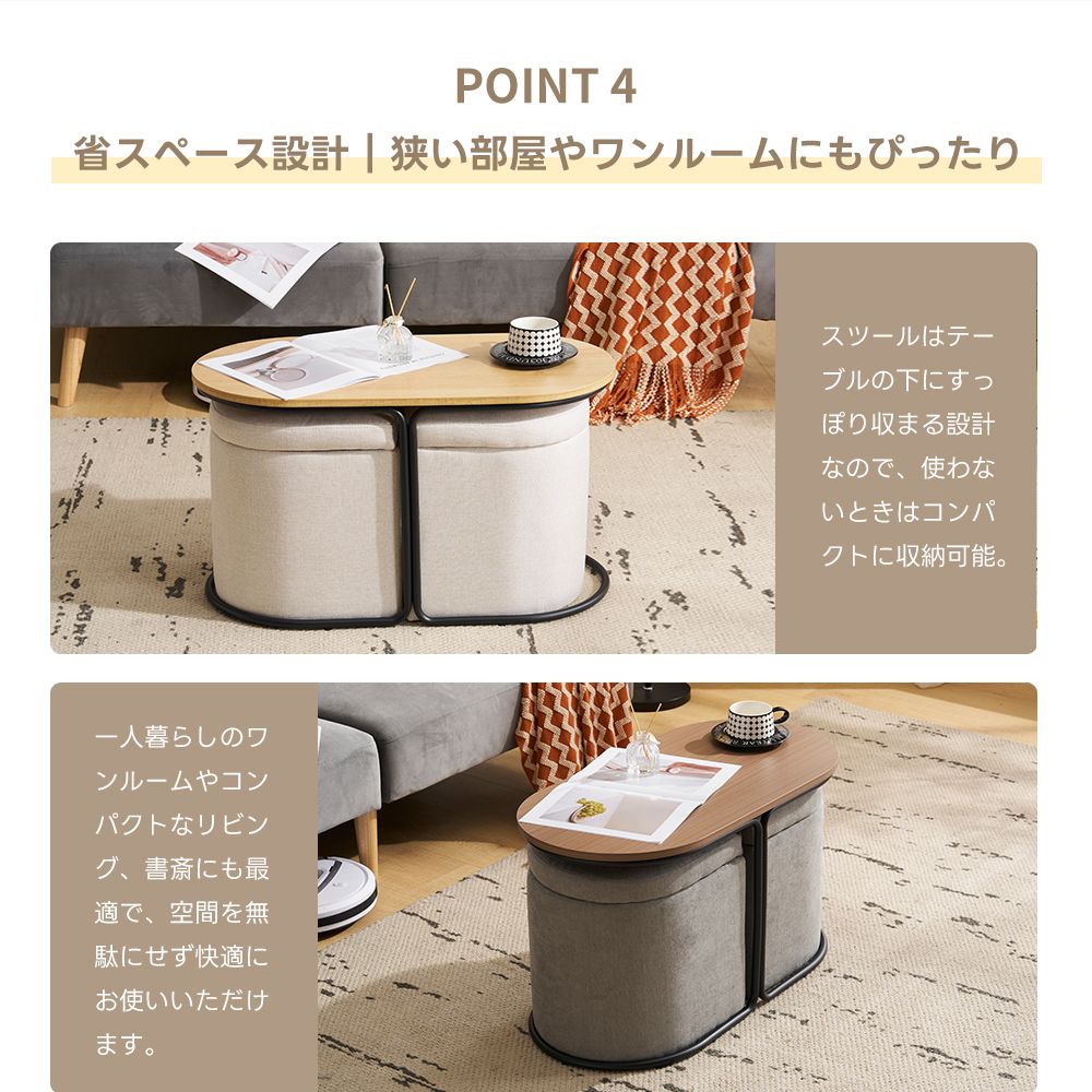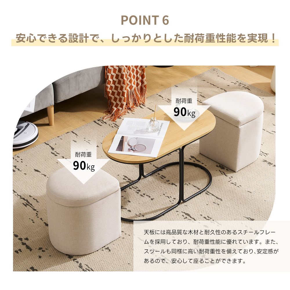センターテーブル 完成品 収納付き スツール2個付き ローテーブル 北欧風 サイドテーブル ソファテーブル リビングテーブル モダン 組立不要 ナチュラル